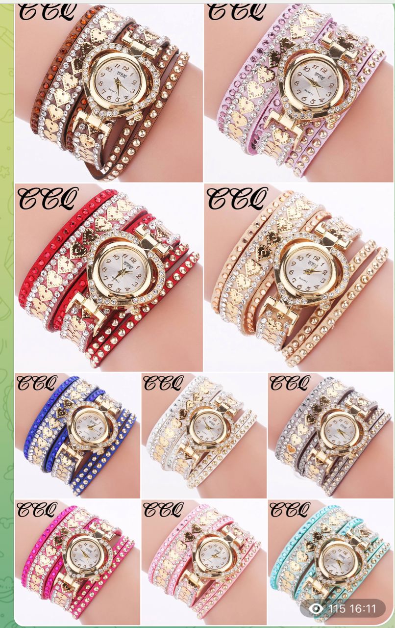 CCQ Wristwatch available in blue, pink,gold,red and available as seen